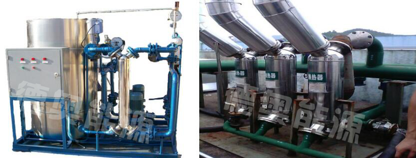 換熱器采用最新型螺紋螺旋管高效換熱器,傳熱系數高達13600w/m2?℃,是傳統換熱器的3~7倍,另外,在換熱器中蒸汽溫度高走管內,循環水溫度低走管外,熱損失小,總換熱效率近100%。同時,結合機組氣候溫度補償、定時分段等自動調節控制功能的實施,可節約蒸汽10 %以上。
