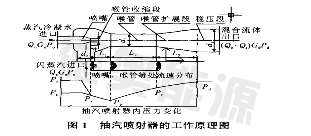 抽汽噴射器是水抽氣類型噴射器中的一種另類。圖1為該類噴射器的簡單結構原理圖。