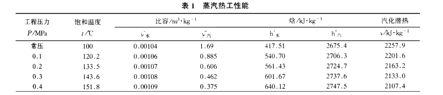 抽汽噴射器的節能效益,集中體現在增加回收了一部分原來可能要排放的乏汽的熱量。應該承認,噴射器本身就是一種效率比較低的流體設備,再加上水和水蒸氣在比容方面的巨大差別,使得噴射器的抽汽能力突出到工作流體抽吸乏汽并盡可能地促使凝結的過程上面。蒸汽熱工性能見表1。